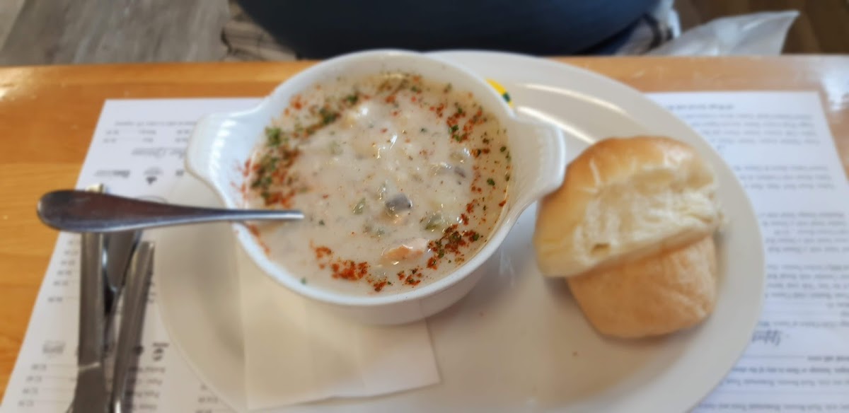 Seafood Chowder with Bread: Rich, creamy, and packed with flavor, it’s a local favorite that speaks to the coastal influence.